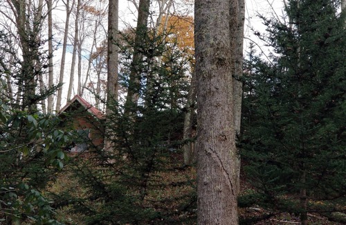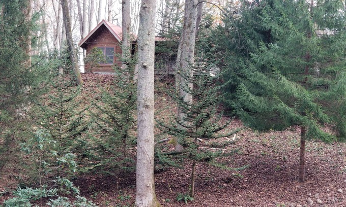 Set in a Tall Cool Woods with Mountain Views. Our woods are full of birds and small wildlife. They are protected in the many trees we have and natural understory of our woods.