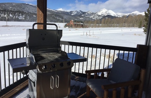 Moose Meadow is set in a valley and surrounded by the Gallatin National Forest, providing you with a spectacular 360 degree view. The front deck is a great place to relax, soak up the scenery next to the gas firepit. Watch for our favorite red fox, you may hear the elk bugle too!