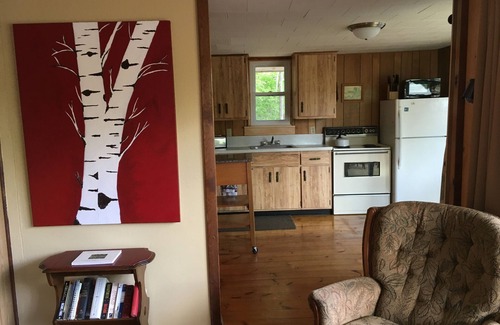 Charming 2 bedroom, 1 bath cottage with fully equipped kitchen, family room and kitchen with beautiful views overlooking Moose Pond.