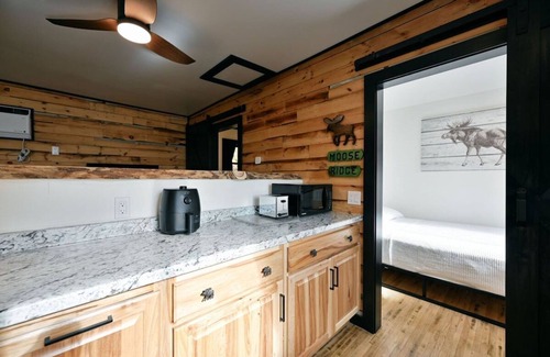 Moose Ridge is a 2-bedroom cabin with a full bathroom located at The Spot near Iron River, WI. The cabin is situated on Buskey Bay and is part of the popular crystal clear Pike Chain of Lakes. The Pike Lake chain consists of 4 fully navigable lakes with over 2,000 acres of water. Moose Ridge offers a rustic charm with an updated contemporary flair that is perfect for a relaxing getaway.