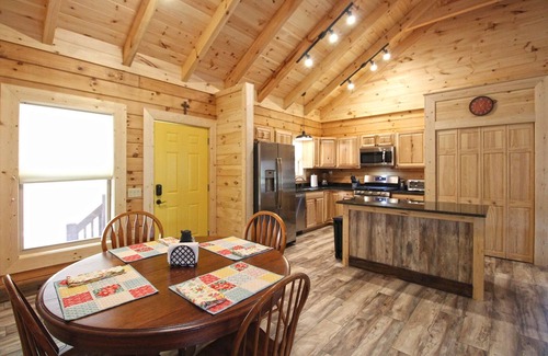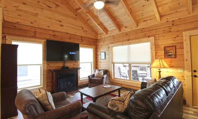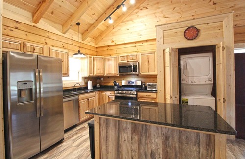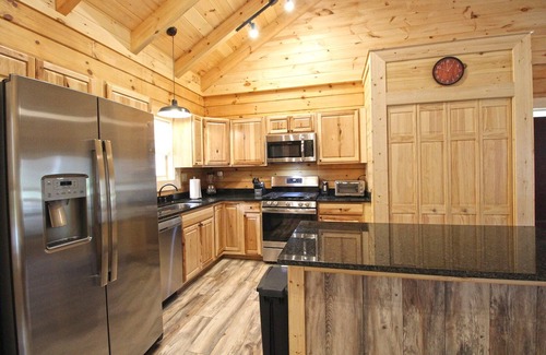 - Modern Amenities: Each cabin is equipped with flatscreen TVs, gas log fireplaces, and fully stocked kitchens with granite countertops, ensuring a luxurious stay.