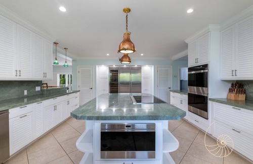 Ready to soak up some sun? This property offers an inviting outdoor space surrounded by lush, mature landscaping for added privacy and includes a lounge area, grill, dining table, pool, as well as access to a refrigerator and commercial ice maker. Need dockage for your boat? You’re in luck! Morada Breeze includes 75’ feet of dockage, a 20,000 lb boat lift, and a fish cleaning station.
