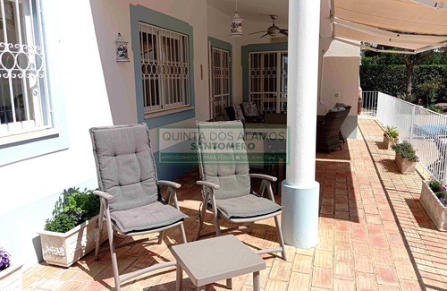 Casa Amora in Quinta dos Álamos is composed of 3 bedrooms (1 double and 2 x 2 beds), two private bathrooms plus a bathroom with shower, living room with cable TV the kitchen is fully equipped. The lot is fenced by a wall and hedge and the garden has a grassy area by the pool. The fenced pool (10 x 5) with large terraces, barbecue and garden with grass and flowers.