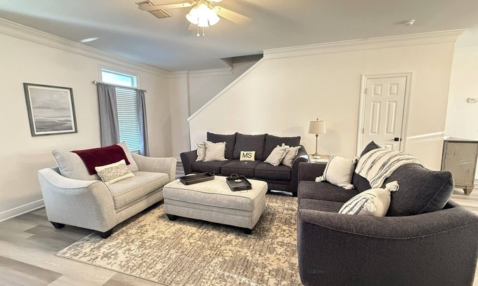 This family- and fan-focused 4BR/4.5BA House sleeps up to 10 and features a private backyard with a patio, a large open-concept downstairs area, making it a perfect game day house. Perfect for MSU football weekends, graduations, Bulldog Bash, or work groups in town!