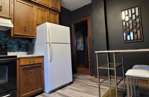 There is also a second apartment in the basement with its own entry/exit (also available for an extra fee). a locked door from both sides, off of the kitchen, prevents cross traffic and ensures privacy and safety. You may run into your neighbors on the back patio and parking areas only.
