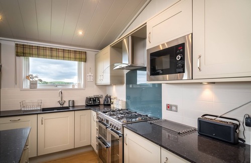 An open plan kitchen / diner / lounge provides a spacious family area with uninterrupted views towards St Andrews bay. Patio doors lead onto the decking and BBQ facilities.
