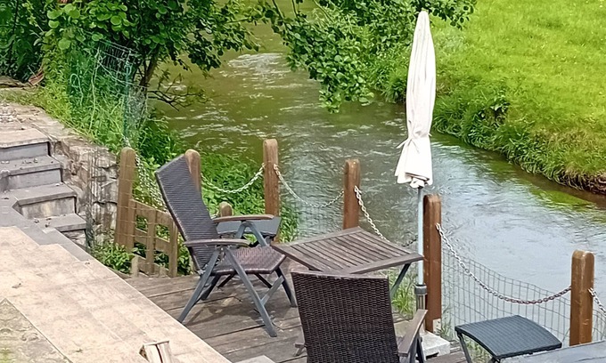 Klüsserath is a wine village on the Mosel, between Trier and Bernkastell-Kues nestled between vineyards, forests and the Moselle with boat landing stage. Shopping for daily needs and restaurants are in place. On the outskirts there is our new 64 sqm modern, comfortable apartment with separate entrance, not visible terrace & direct access to the 2000 sqm fenced garden, which borders on the mill creek. It is very quiet but central location, ideal for nature lovers and peace seekers.