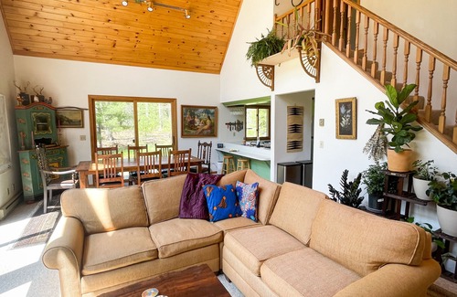 If you're looking for a stunning location to host your wedding stay, consider Moss Creek Cabin in the woods on Madeline Island. This charming chalet-style home offers a serene escape surrounded by nature while providing ample accommodations for your wedding party.