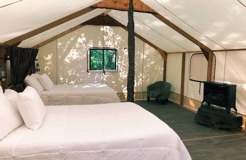 Well behaved pets are allowed in canvas glamping tents for additional fee.