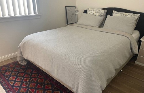 This 2-bedroom, 1-bathroom rental features a living room, a fireplace, and air conditioning. Bathroom amenities include a hair dryer, towels, and toilet paper. The kitchen is equipped with an oven, a stovetop, and a refrigerator, as well as a coffee maker, an electric kettle, and cookware. And you won't have to pack extra clothes, because you'll have a washer and dryer, too.