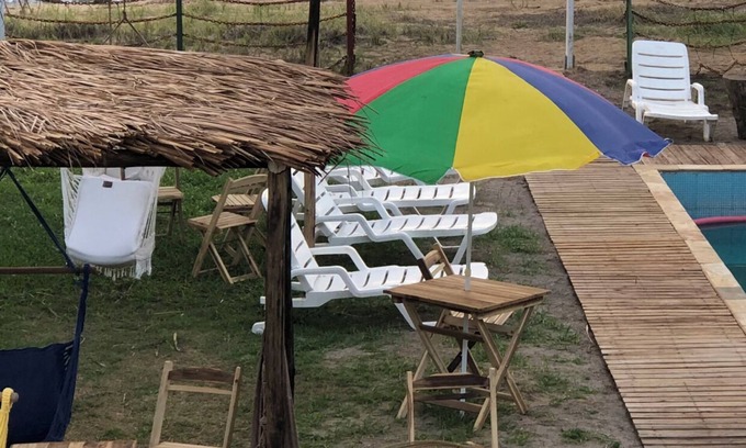 Furnished chalet sleeps 4, with fridge stove, double bed, hammock, beachfront pool, near Porto de Galinhas and Carneiro beach the hostel is very well located, near the center .near pharmacy. Supermarket. Very good service, kind and attentive staff.