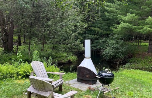 Willow-Brook cottage is a newly renovated stream-side cabin with a river on both sides next to a swimming hole, looking directly out on both a mountain and private lake. The cabin sits on a 23 acre property from which you can only see the owners main house. Settled 7 minutes from both Woodstock and Phoenica ( in opposite directions), this is a perfect location to explore in both areas. Half an hour exactly to Bellayre Mountain for skiing. The cottage itself was renovated this January down to the studs with an all new kitchen, bathroom and central AC/Heat. The interiors are a beautiful mix of Josef Frank Fabrics and mid-century furniture and is the guest house for the homestead. With its own driveway, you will not find a quieter or more tranquil spot that is easily accessible to everything in the area. If you have an interest in fishing, bring your pole and come cast in the stream-fed private lake/pond. This valley and home exude a special peace.