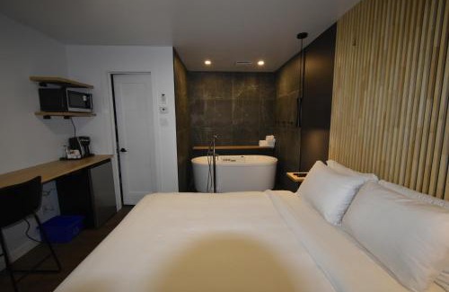 This motel is 2.2 mi from Drummondville town center, overlooking the Saint Lawrence River. The motel offers a sauna, hot tub and rooms with a microwave. Guestrooms are equipped with refrigerators and coffee making facilities. The rooms have blue bedding and light wood furnishings at the Motel ANF. Guests can work out in the fitness center or play in the game room. The motel also has a 24-hour front desk and free parking. The hot tub is available for use at a cost. The Alouette is 5 minutes’ walk from the waterfront of the Saint Lawrence River. The motel is a 5 minutes’ drive of Hemming Falls.