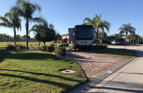 This beautiful pull through pad is located in the sought after Mt. Olive Shores North Community. This rental is for pad only. You bring your own motorhome. No trailers or 5th wheels allowed. Full hookup including 50 amp, water and sewer. All guests have full access to amenities including pools, fitness room, game room and pickleball courts. Just a 40 minute drive to Disney and Tampa.