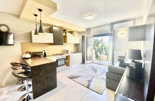 50 m2 apartment, 1 bedroom, a living room / kitchen equipped with all appliances, 1 bathroom, a balcony with outdoor furniture.