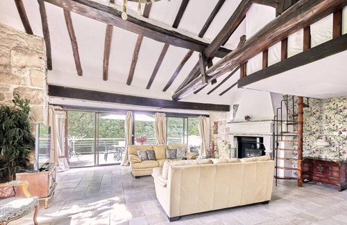 The 900 year old watermill has been restored with love and care and there’s a great sense of character throughout with French furnishings, comfortable bedrooms and bright bathrooms. The high wood-beamed ceilings in the spacious living room are impressive. Doors lead out to a wooden balcony, designed for al-fresco dining in an idyllic spot as the river flows under the house. Little touches like the welcome pack on arrival with the ingredients for an evening meal make a big difference and show how much the owner cares about her guests and home.