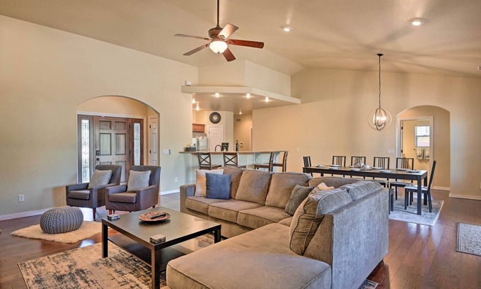 Discover your new favorite home-away-from-home when you stay at the ‘Mount Elden Retreat’ — a 4 bedroom, 3 bathroom vacation rental nestled up against Flagstaff’s iconic Elden Mountain! Inside offers a spacious and open floorplan perfect for gathering and spending time with the whole crew. Cook family dinners in the fully equipped kitchen and savor them in the private yard while admiring the unbeatable views. Head out any time of the year and embark on endless outdoor adventure opportunities!