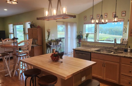 • Modern kitchen with all appliances and kitchenware. The kitchen is open and connects to a gorgeous sunroom with a dining table and a 270 degree view of Mount Nittany. It also connects to a large living room with piano, TV, and a full suite of Nintendo consoles with 100s of games.