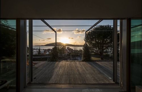 A little glass box perched on Mt., overlooking the sea and the river.