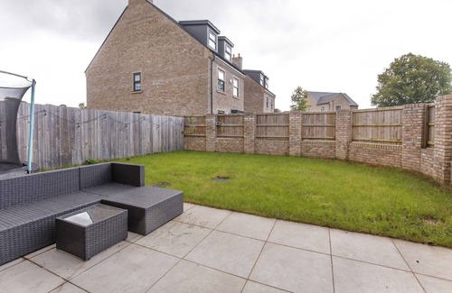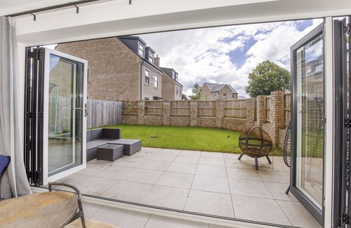 As you arrive at the property, there is a driveway to comfortably park 2 cars. Inside the property itself you are instantly greeted with a spacious entrance hall, with glass panelled staircase. On the ground floor, you will find a downstairs WC, and an elegant open plan living, kitchen and dining room. With a fully equipped kitchen, including AEG 5 Ring induction hob and cooker hood, dishwasher, full fridge freezer, kettle, toaster and microwave for your use. Following on is the dining area, with a large dining table seating up to 6 guests. The living space offers a comfortable corner sofa, looking onto a large Smart Screen Tv, the perfect spot to sit and soak up all of your favourite programmes after a day well spent in the city. The 5 bifold doors leading onto the garden ensure the ground floor space is filled with light. The garden itself is fully enclosed and generously spaced, with a small patio area and rattan corner seating, a grassy area and a trampoline for the children to enjoy on the summer days!