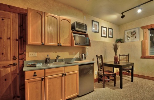 The studio is privately located on the ground level giving you privacy in your mountain get away. The surrounding acreage provides a real mountain experience and spectacular views of the surrounding mountains and stunning river valley below.
