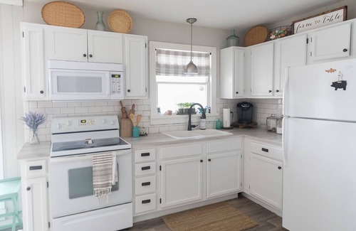 The nicely equipped kitchen features a fridge with an ice maker, microwave, oven, coffee maker (drip and Keurig) pots, pans, utensils, dishes, and glassware are all included. We also provide a gas grill for outdoor BBQs, just keep in mind sometimes the tank may require filling.