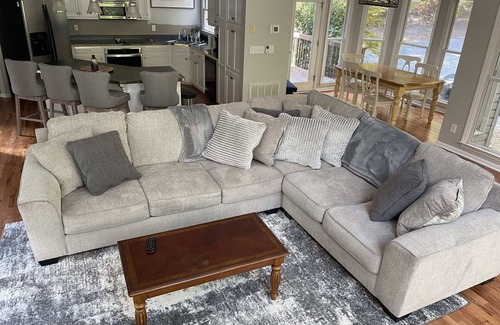 The kitchen is super spacious and fully stocked with a island that has bar stools so people can socialize with using the kitchen. Please place dishes in dishwasher on departure and start them. The light switch to the right of sink (the middle one) operates the dishwasher.