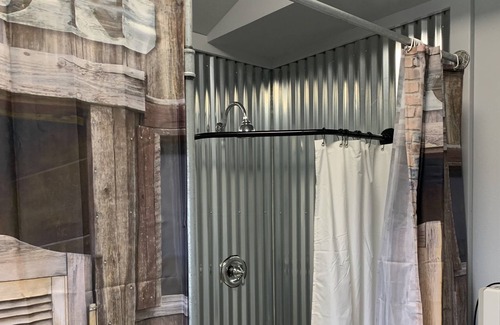 Separate shower house with 2 showers toilet and sink with instant hot water. Each cabin has a grill and flat grill combo .