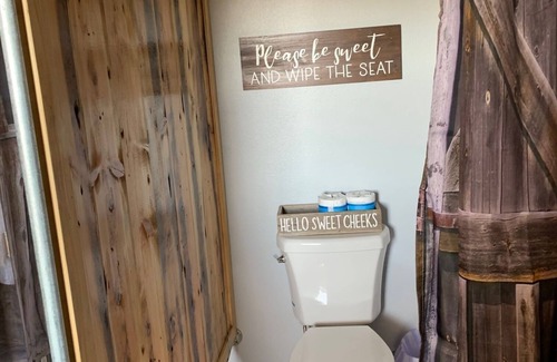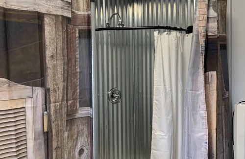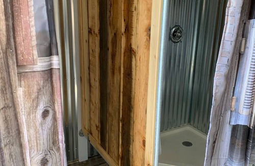 Standing heaters for patio in winter months. Separate shower house with 2 showers toilet and sink with instant hot water. Each cabin has a grill/flat grill combo.