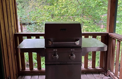 After playing outside, come inside and enjoy the relaxing cabin, with both a living room and a bonus room above the garage, the adults and kids can have a plac to hang out. Build a fire in a wood-burning stove. Cook a meal for the whole family. The house will sleep in 9. On the main floor, there is a master suite with a queen-size bed and newly remodeled bathroom with a double-headed shower. Upstairs there are two bedrooms and a full bath. One bedroom has a queen-size tempurpedic bed while the other one sleeps up to 5 with twin bunk beds and a trundle.
