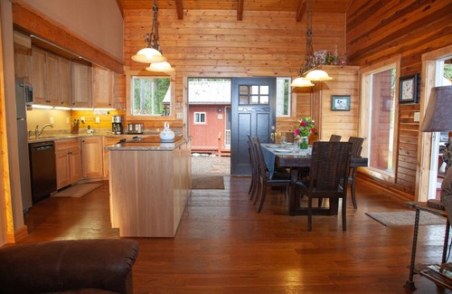 As a traveler, you'll appreciate the main cabin's thoughtful amenities, including free WIFI, a washing machine and dryer, 2 TVS and games for your entertainment. The fully stocked kitchen is a chef's dream, with a stove, oven, refrigerator, grill, and all the necessary appliances and utensils to prepare delicious meals.