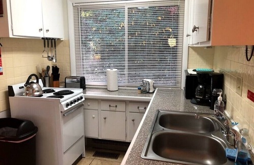 This vacation ready rental has a fully-stocked kitchen with appliances, pots and pans, dishes, coffee, soaps and paper products. We provide linens, towels and blankets.