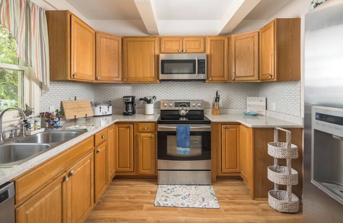 With 5 spacious bedrooms and 3 bathrooms, Tundra Swan Chalet combines comfort, style, and ample space for families and large groups. The main level features a cozy living area with a stone wood-burning fireplace, a plush sectional sofa, and a large flat-screen TV—perfect for relaxing after a day of adventure. The remodeled kitchen, with brand-new appliances, sleek countertops, and generous storage, is ideal for preparing family meals, while the adjacent dining area invites shared meals and good conversation. Step outside to the expansive deck for panoramic views of Beech Mountain's ski slopes and surrounding beauty.