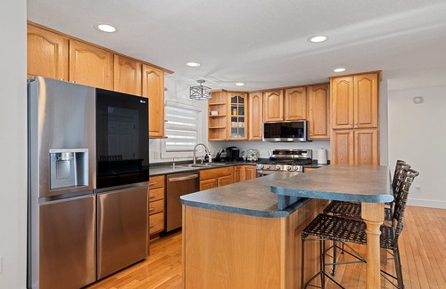 This luxurious home is equipped with all the amenities you need to make your wedding weekend seamless and enjoyable. Gather in the inviting open-concept living area, complete with an electric fireplace and a big-screen TV, perfect for cozy moments with family and friends. The well-appointed kitchen boasts high-end appliances, ensuring that your culinary needs are met, whether for rehearsal dinners or post-wedding brunches. Guests will revel in the outdoor hot tub, fire pit, and expansive covered porches, where they can unwind and soak in the surrounding nature. Your bridal party will appreciate the spacious bunk room accommodating up to nine guests as well as the master suite featuring a jetted garden tub for ultimate relaxation before the big day.