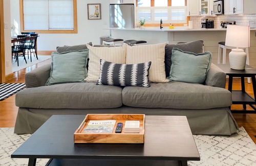 This charming newer 3 bedroom, 3 bath home was completely updated in 2022. The farmhouse inspired décor is complete with shiplap and touches of rustic charm throughout. Careful attention has been paid to sourcing artwork from local area artists and artisans.