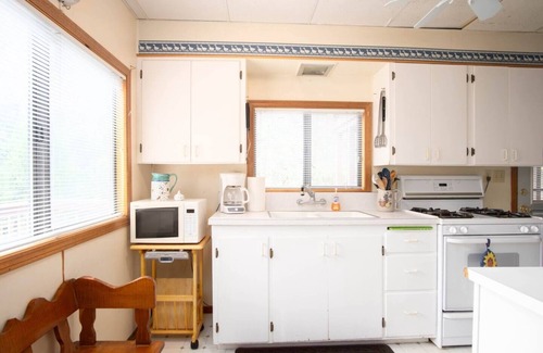 Inside this charming cabin, you'll discover 2 bedrooms with three cozy beds, a well-appointed kitchen complete with an oven and microwave, a dining area with a view of the mountain, and a flat-screen TV for your entertainment. Rest easy knowing that plush towels and quality bed linen are thoughtfully provided to enhance your stay.