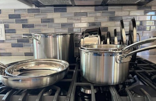Our kitchen is fully equipped for all your kitchen needs. It includes: Coffee maker, french press, ground & full bean coffee, coffee grinder, tea, electric kettle, emersion blender, Cuisinart Pots & Pans + lids, Henckels Knife set, cutting boards, measuring cups, mixing bowls, baking pans & sheets, cooking utensils, olive oil & many spices.