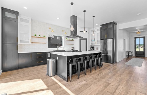 This remarkable home features modern amenities that cater to every guest's needs. Enjoy two entertainment areas that include a fully equipped farmhouse kitchen with quartz countertops, an expansive dining table for up to 12 guests, and spaces perfect for both relaxation and festivities. The soundproof walls ensure you can find quiet moments amidst the celebrations, while the outdoor front porch offers breathtaking views of wildlife and sunsets. With multiple bathrooms, a dedicated laundry room, and advanced heating and air conditioning systems, every detail has been considered for your convenience and enjoyment.