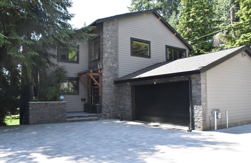 Tucked away in a quiet setting nested in the woods just a 10 minute walk to Grouse Mountain which offers skiing, skating, snow shoeing, sled rides, tobogganing and more. In the summer enjoy great hikes, mountain biking, and walks along the north shore mountains. Recently renovated this west coast contemporary home offers 3500 sq feet of living space on 2 levels. All 4 bedrooms have a queen-size bed and all rooms are located on the top level for maximum privacy. The master also has a queen size sofa bed making enough room for 10 people. There is a total of 4 full bathrooms, 3 upstairs and 1 on the main floor.