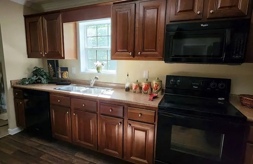 New Home, NO CLEANING FEE in the country, located just 2.5 miles from the most visited State Park is our 3 BR, 2 full BR,and large front and backyard area with firepit and cozy front and back sitting areas. We have over 60 amenities!! New appliances, garden tub, walk in shower private to master bedroom. Children and PET FRIENDLY!!! Coffee and tea bar!!