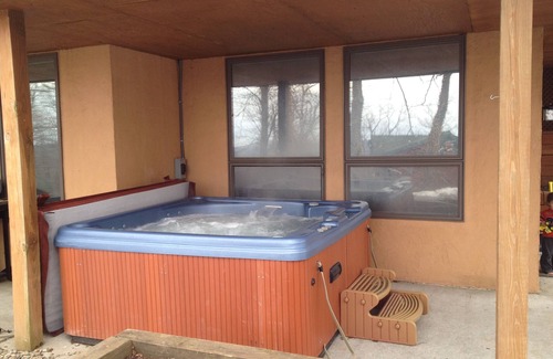 Relax in the outdoor hot tub large enough for up to six adults. A new hot tub was installed in 2020.