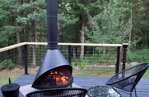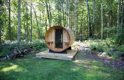 There’s a large private deck offering an outdoor eating area, a fireplace, and a gas grill. Follow the string lights to the 4 person sauna just off of the deck. We are located just minutes from the cute hamlet of Narrowsburg and down the road from tubing at Delaware River. The Upper Delaware River and surrounding region is one of the most important bald eagle wintering areas in the northeastern US; you can even go on an eagle excursion tour nearby!