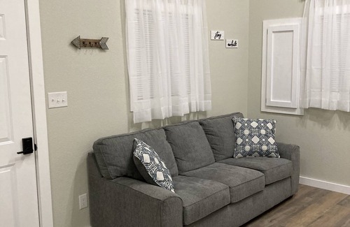 The Mountain Laurel House is a cottage style rental that can comfortably accommodate 6 guests. With a master bedroom (1 queen bed) and an open loft (2 queen beds), there is ample room for families and couples who are visiting the southern West Virginia coalfield region. Each room in the cottage has its own mini-split HVAC unit, ensuring everyone is comfortable, no matter where they are in the house. The spacious bathroom features a double sink vanity and a tub/shower combo. Additionally, there is a full kitchen -- stocked with dishes, utensils, and cookware -- making the Mountain Laurel House a home-away-from-home.