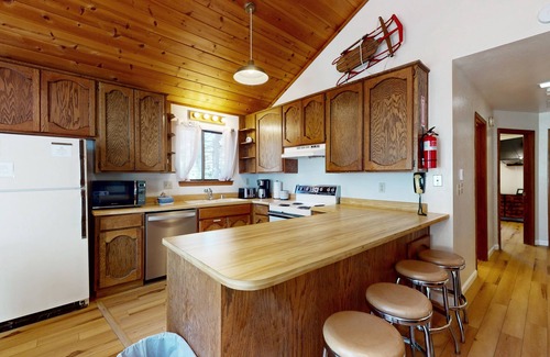 Get cozy inside in the winter with a warming wood stove, cable and DVR service, and HBO, Showtime, and Netflix streaming. There's a 43-inch 4K Smart TV with a DVR in the living room, a 43-inch 4K Smart TV in the master bedroom, and a 42-inch HDTV in the second bedroom. Use the free WiFi to look for directions, and in the summer, hang out on the deck while you read a book, sip on a beverage, and bask in your lovely forested surroundings. You'll also have a private washer/dryer for your added convenience.