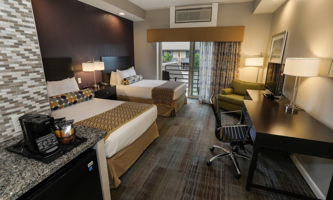 • Living Space: two double beds, desk, coffee maker, complimentary coffee, temperature control, Wi-Fi, TV, telephone with voicemail, alarm clock