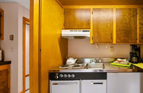 Well-equipped kitchenette with stove, mini fridge, coffee maker, toaster, cookware & utensils. Linens and towels provided.