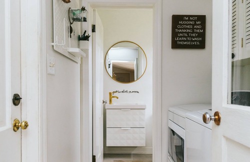As if it could get any better at the Mountain Midcentury, we now have a HOT TUB! This is the perfect small-town base camp for your Blue Ridge getaway. If you’re lucky enough to be here when a storm rolls in over the mountains, grab a cup of coffee and get situated on the couch for an awesome show! The view is the same from the office, which includes use of a printer and large desk. The dining table expands to seat 10 comfortably, plus 4 at the island. Movie night is cozy in the downstairs den with the giant down-filled sectional and 65” TV. Both Queen rooms have year-round mountain views. The eastern facing backyard is enveloped by the mountains and a birdwatcher’s dream! Lit up with string lights year round and fireflies in the summer, it is quiet and charming, great for kids, and the perfect setup for an outdoor movie (BYO projector!). Canton has so much to offer, like tubing on the Pigeon River, great local dining, and the small-town mountain culture we all love. This home is a great place to park and unplug, but also incredibly convenient to Asheville (where we work and school!), Haywood County amenities, the Biltmore House (pictured), the Blue Ridge Parkway, apple orchards, Cataloochee Ski Resort, many incredible waterfalls, and some really fantastic local swimming holes!