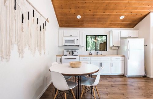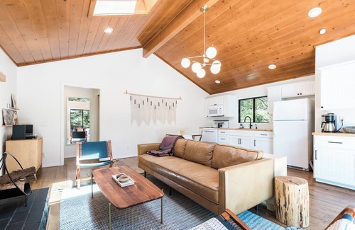 The Fernwood Cabin is a 1958 mountain retreat at the bottom of Fern Valley in Idyllwild, CA. Tucked in among towering cedars and surrounded with seasonal ferns - you'll be returning to nature. Walk to town in 15 minutes. Amenities include Level 2 EV charging.