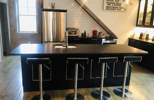Oasis of hip luxury!! Incredibly unique open loft like living space with a kitchen area, bar and three sleeping cubbies( 2 full 1 queen bed). Perfect for a solo , couple , family or group of friends that like unique and beautiful stylish spaces . Each cubby is lined up next to the other. There are NO SEPARATE BEDROOMS…. See pictures for clarification) and set into the roofline . Custom wood plantatiin shutters are the doors that close off each cubby for privacy. Every cubby has a set in bookshelf with two USB ports and one electrical outlet , a small personal fan and an RH light sconce on the wall. There are two very large drawers under each cubby and two overhead cabinets are used to store clothes, essentials of each cubby occupant. Both down and non down pillows are on the beds as well as duvet covers and fine bedding. . Every aspect of this property is hip and cool with very high-end finishes. The space is very unique and probably not something you have seen before . Gorgeous bathroom, kitchen bar, two burner induction stove, mini freestanding oven on the back counter, Bosch dishwasher, Sharp microwave drawer, Nespresso machine, regular coffee machine , Magic bullet, electric tea kettle, and blender. The barn has a private outdoor shower with a dressing room on the back of the property, as well as a new wood burning fire pit, (wood and starters provided) Deck off the two sets of French doors has a table and two chairs two lounge chairs with umbrellas and a propane grill. Great sound system and a 55 inch Samsung smart TV (no cable sorry) . Recently installed shared gym on the lower level ( in one of the garage bays) with a stationary bike. Elliptical machine , concept one rower, weight bench , dumbbells, kettle balls and a 70 inch Samsung smart TV . This space has showhouse potential and it’s beautiful in every way . Some guests have commented that the photos do not do it justice. Lastly , pets are permitted on a case by case basis with an additional charge of $25 a day per dog.
