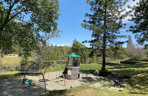 Set on 20 secluded acres, this property is the perfect place to relax. There are great views of the mountains and you can watch the waterbirds on the pond. There is plenty of space for the kids to play outside on the swings set or soccer field. There is a ping pong table and a fuse ball table for more entertainment. The 5000 sq foot house has a formal living room, a kids play room, and a sitting room in the Master Complex. Plenty of room to spread out if you want. The living/kitchen area is large enough for the whole group to hang out as well. We are 8 minutes from Bass Lake and about 35 minutes from the south gate of Yosemite. There are many local hiking trails, rivers and lakes to explore, and high altitude adventure all around.